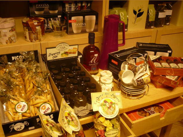 Speciale confituurtjes (wat dacht u van aardbei-champagneconfituur of marmelade met whisky, klassieke en minder klassieke koekjes, diverse soorten peperkoek, fudge,... Een selectie uit het assortiment van het befaamde Maison Dandoy. Ook enkele Italiaanse delicatessen zoals olijfolie, balsamico, pesto en pasta’s, amaretto, limoncello,…